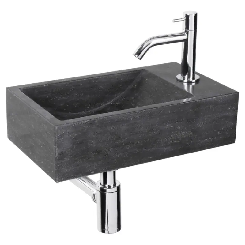 Deze moderne fonteinset is geschikt voor vrijwel iedere toiletruimte. De fontein is voorzien van een kraan aan de rechterkant. De fonteinset is vervaardigt uit hoogwaardig natuursteen en wordt geleverd inclusief koudwaterkraan, afvoerplug en sifon. De bevestigingspunten bevinden zich uit het zicht van de gebruiker.