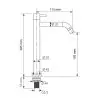 De waskom is mooi klein van vorm en heeft een afmeting van 25 x 25 cm. De hoogte is 11.5 cm. Er zit geen overloop in verwerkt. De wastafelplank heeft aan de voorzijde van het fontein blad een uitsparing waar u een handdoek in kunt plaatsen, is 40 cm breed en heeft een diepte van 25 cm. De plank is uitgevoerd zonder afvoergat.