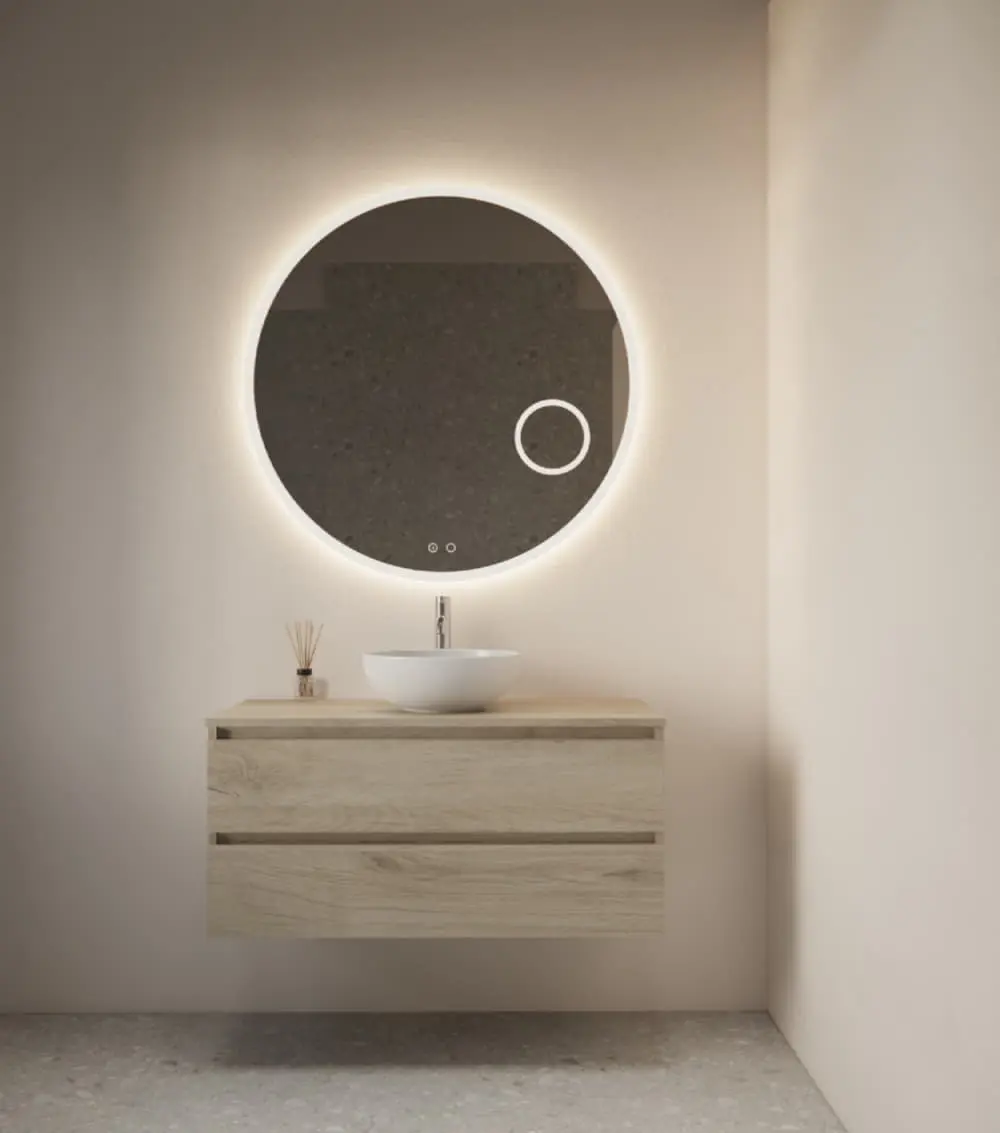 De Sol spiegel is uitgerust met hoogwaardige LED-verlichting die zorgt voor een heldere en gelijkmatige belichting. Deze verlichting is ideaal voor dagelijkse taken zoals gezichtsverzorging en make-up applicatie, waarbij een nauwkeurige kleurweergave essentieel is. De dimbare LED-lampen stellen je in staat om de lichtintensiteit aan te passen aan je behoeften, waardoor je altijd de perfecte verlichting hebt, ongeacht het moment van de dag. De energiezuinige LED-lampen helpen je ook om de energiekosten laag te houden.